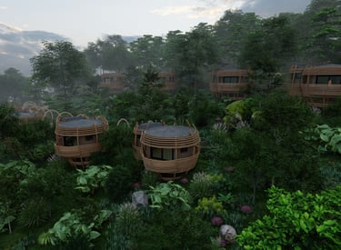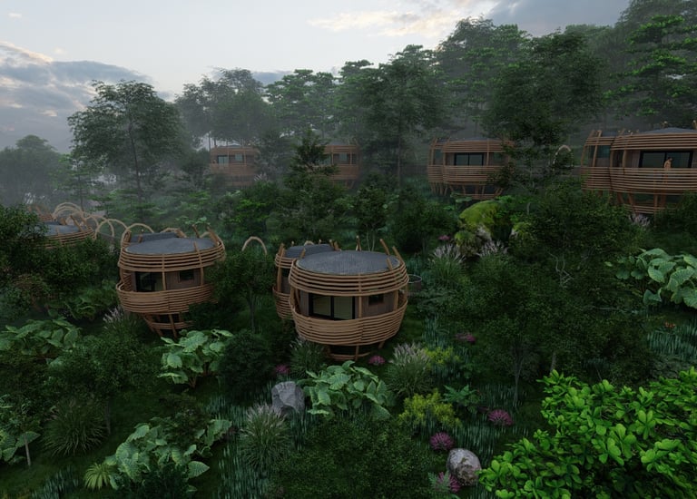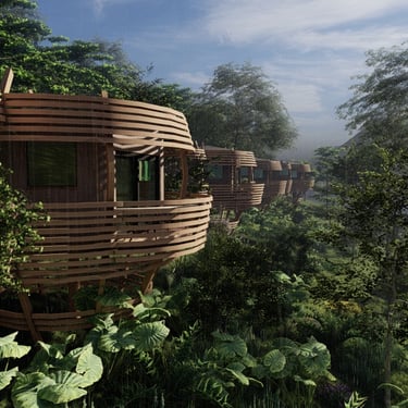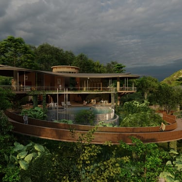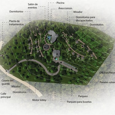 Proyecto tipo lodge ubicado en Pejibaye, Jiménez, Cartago, Costa Rica, diseñado para integrarse al entorno montañoso mediante el uso de materiales naturales y estrategias sostenibles. La propuesta busca potenciar el ecoturismo y generar desarrollo económico local con bajo impacto ambiental.