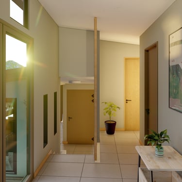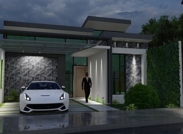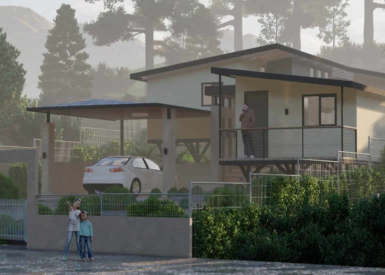 Proyecto residencial ubicado en Cartago, Costa Rica de diseño moderno y funcional, concebido para optimizar cada metro del lote. La propuesta integra espacios amplios y bien iluminados, doble altura en área social y conexión directa con el jardín, priorizando ventilación cruzada y eficiencia espacial.