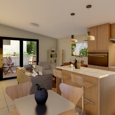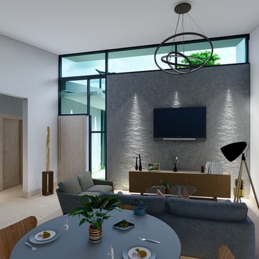 Un proyecto residencial concebido para equilibrar funcionalidad, confort y conexión con la naturaleza. La vivienda se organiza mediante una zonificación clara que separa lo social de lo privado, mientras que el concepto abierto en sala, comedor y cocina potencia la amplitud y la convivencia familiar